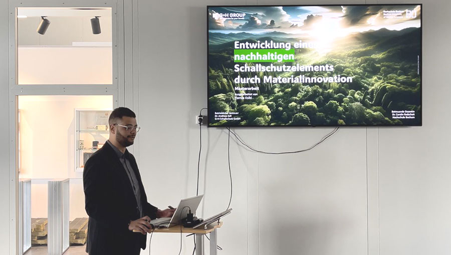 Seine Arbeit über innovative und nachhaltige Schallschutzelemente zeigt auf, wie neue Materialkombinationen den ökologischen Fußabdruck im Vergleich zu herkömmlichen Schallschutzlösungen deutlich reduzieren. Die Ergebnisse der Masterarbeit werden derzeit auf ihre Marktfähigkeit geprüft und könnten bald unsere Produktpalette bereichern.