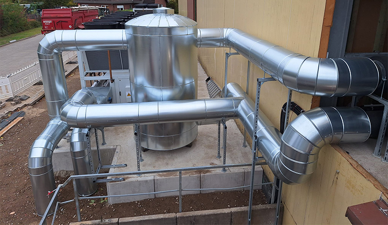 - Außenbereich: Isolierung von Kälteleitungen und eines Speichers mit Armaflex in Kombination mit einer robusten Aluminiumblechummantelung.
