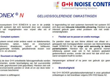 De SONEX®-omkastingssystemen van G+H Noise Control overtuigen door hun nauwkeurig akoestisch ontwerp met hoge geluidsisolatie en geluidsabsorptie. Nog een voordeel is de eenvoudige toegang tot machines en installaties en een ongestoorde materiaalstroom. Voor complexe productielijnen ontwikkelen wij speciale constructies, die veilig en praktisch aan de individuele behoeften van de klant kunnen voldoen.
