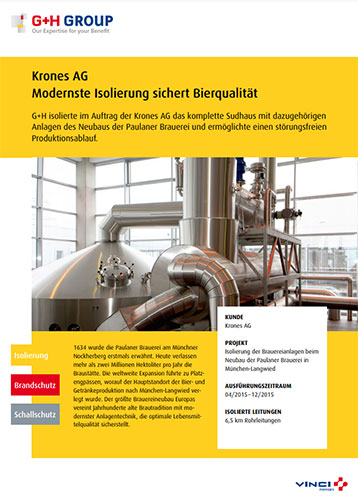 G+H isolierte im Auftrag der Krones AG das komplette Sudhaus mit dazugehörigen Anlagen des Neubaus der Paulaner Brauerei und ermöglichte einen störungsfreien Produktionsablauf.