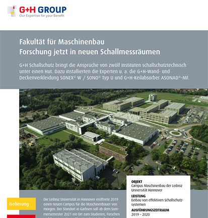 G+H Schallschutz bringt die Ansprüche von zwölf Instituten schallschutztechnisch unter einen Hut. Dazu installierten die Experten u. a. die G+H-Wand- und Deckenverkleidung SONEX® W / SONO® Typ U und G+H-Keilabsorber ASONAD®-MF.