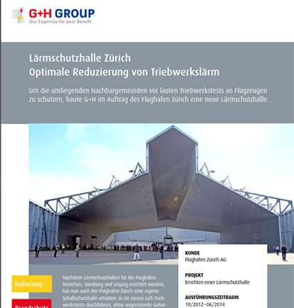 Um die umliegenden Nachbargemeinden vor lauten Triebwerkstests an Flugzeugen zu schützen, baute G+H im Auftrag des Flughafen Zürich eine neue Lärmschutzhalle.